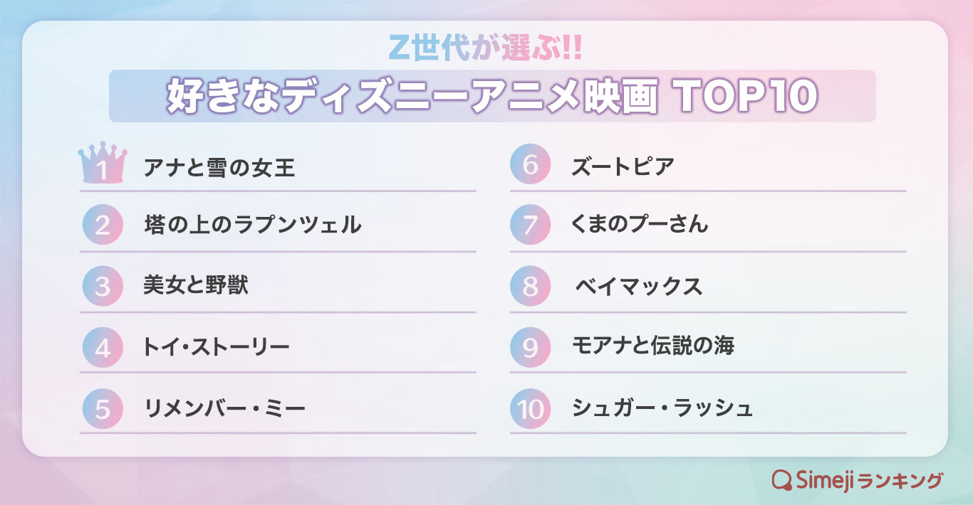 Z世代が選ぶ!! 「好きなディズニーアニメ映画TOP10」