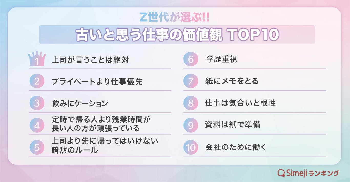 Z世代が選ぶ!! 「古いと思う仕事の価値観TOP10」