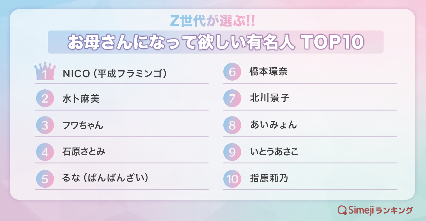Z世代が選ぶ!! 「お母さんになって欲しい有名人TOP10」