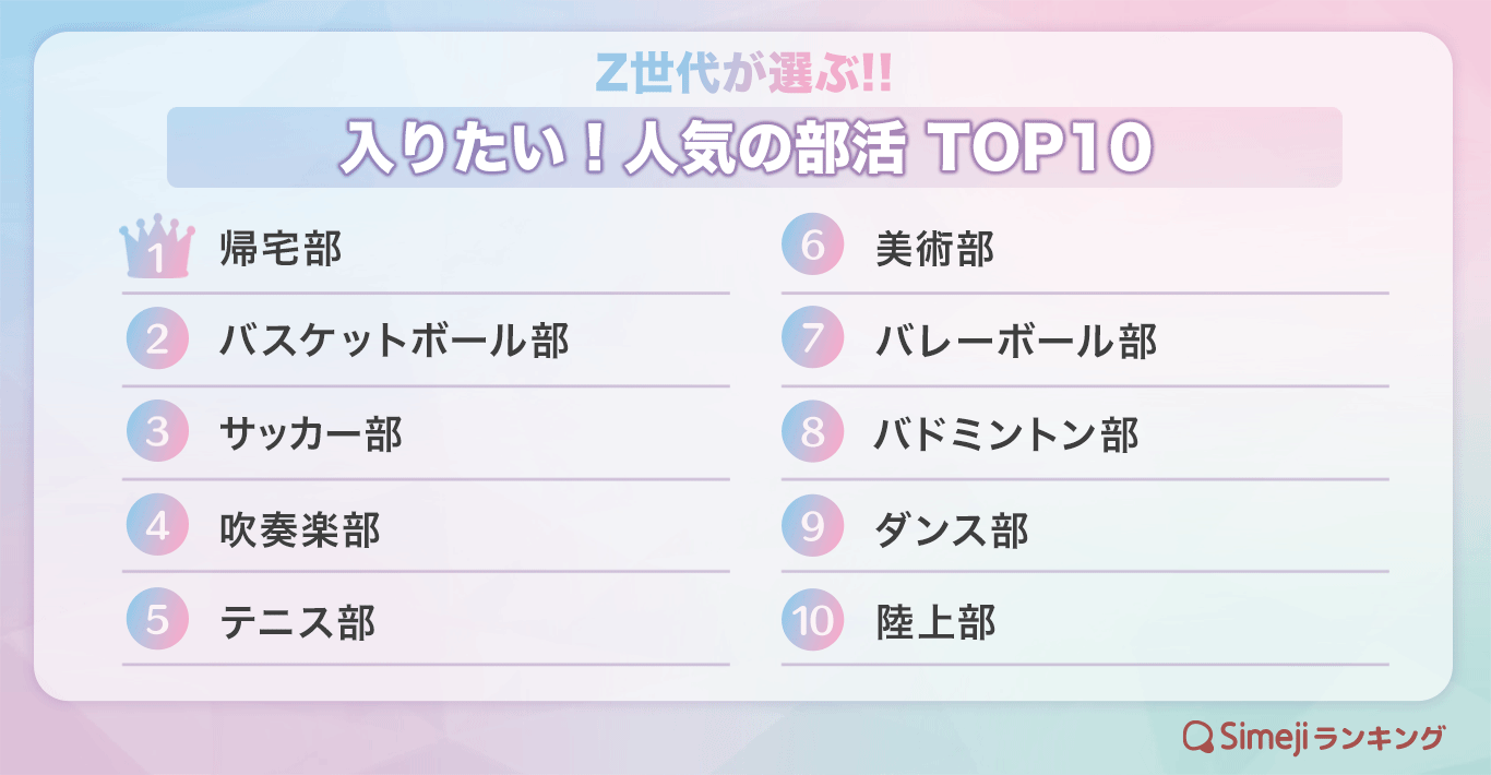 Z世代が選ぶ!! 「入りたい!人気の部活TOP10」