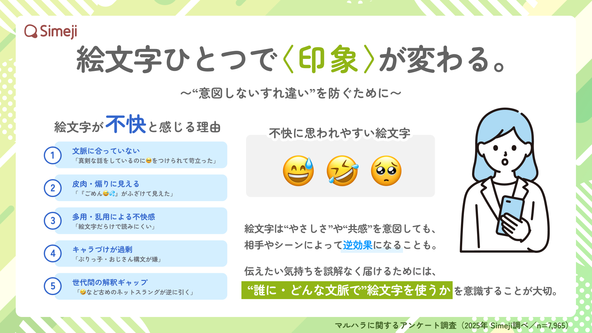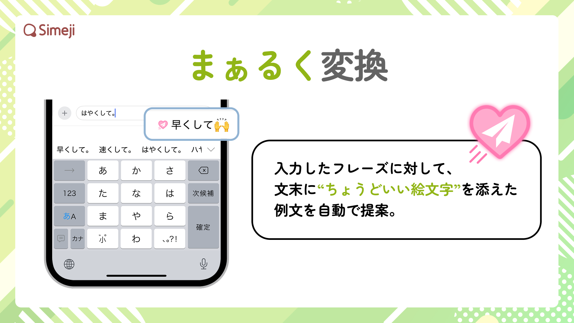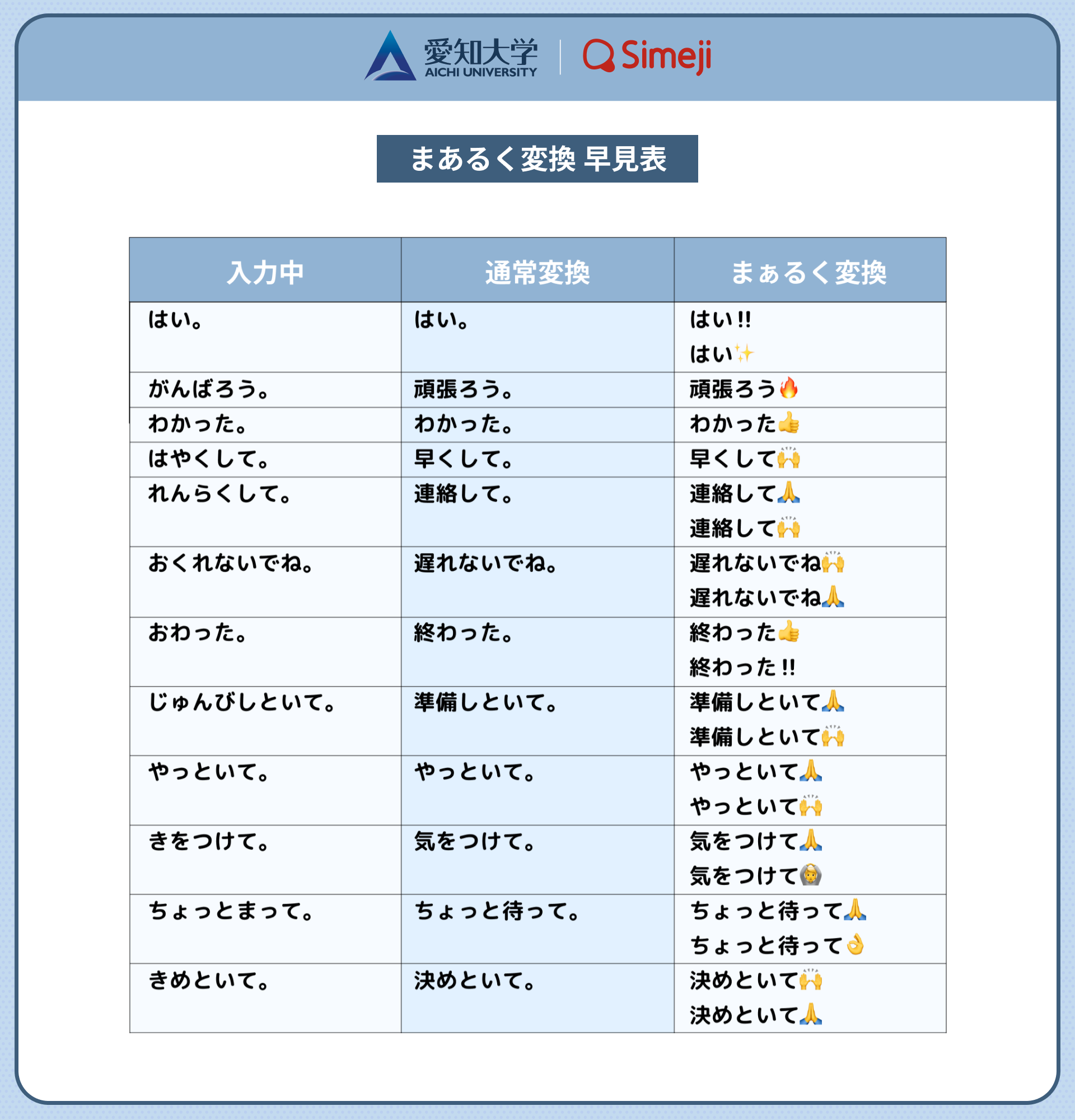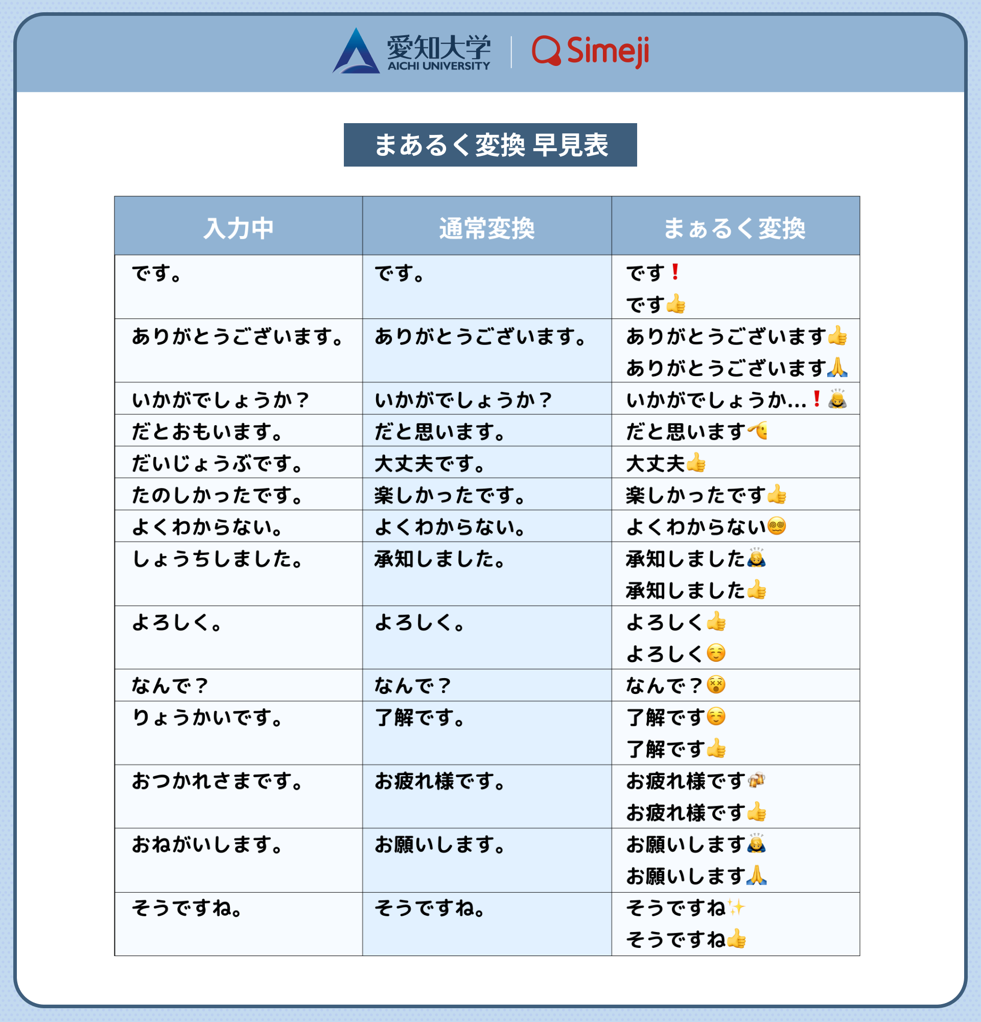 Simejiは、愛知大学の学生研究チーム「JAWS」と共同で取り組む「マルハラをまぁるくプロジェクト」より、ユーザーの感情表現をサポートする新機能を2025年5月にリリースしました。