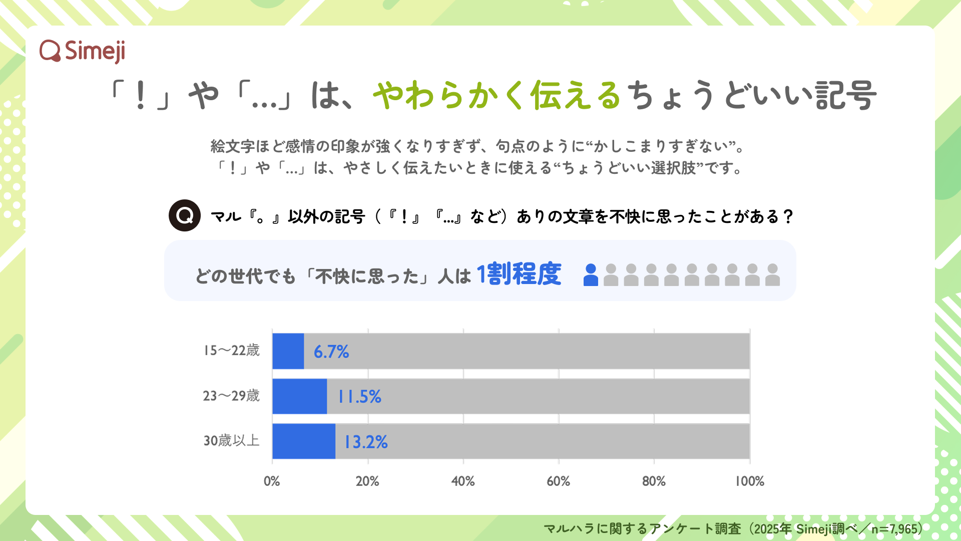 Simejiと愛知大学の学生研究チーム「JAWS」は、本プロジェクトの一環として「マルハラに関する意識調査(n=7,965)」を実施。