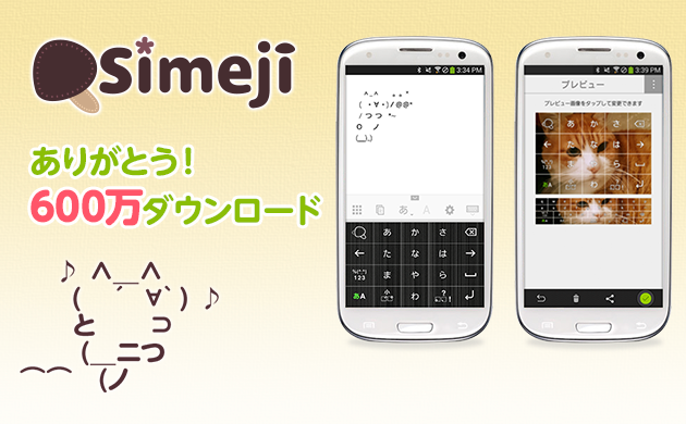 Simeji 600万DL突破!!ヽ(=´▽`=)ノ
