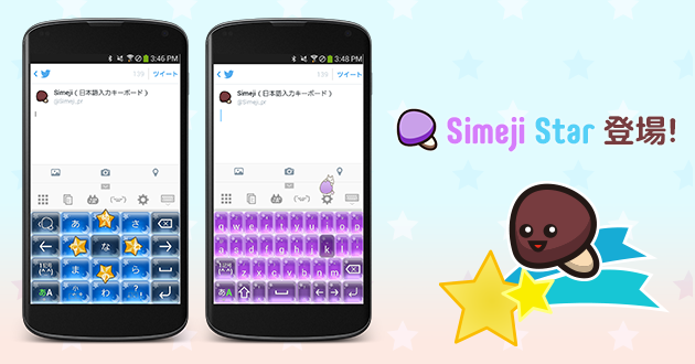 Simejiのボタンスキン上で星が舞い散るカスタムスキン、「Simeji Star」がSimejiスキンコレクションとして新登場!