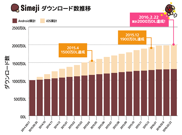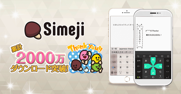 いつもSimejiをご利用いただき誠にありがとうございます。 2016年2月にSimejiは累計2000万ダウンロードを突破*しました