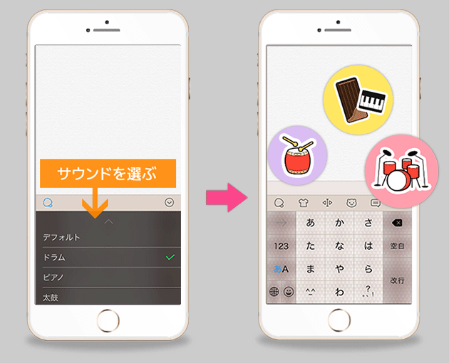 「ドラム」、「ピアノ」、「太鼓」など様々なキータップ音が追加されました。キー入力で音楽を奏でることも・・?
