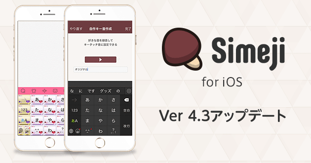 Simeji for iOS ver4.3を公開いたしました。最新バージョンはAppStoreよりダウンロード可能です。