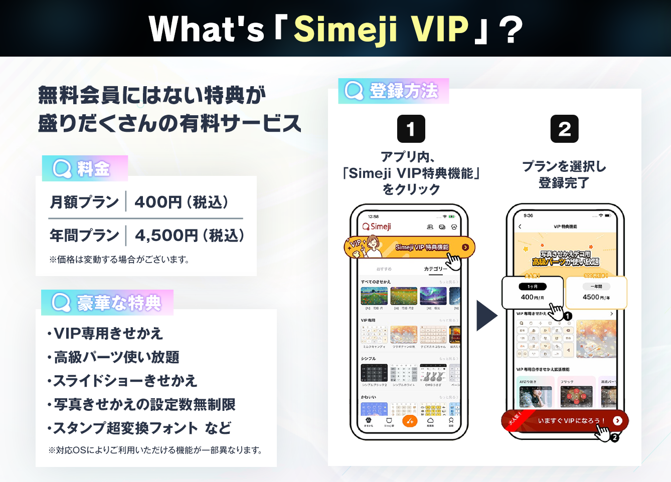 ■サブスクリプションサービス「Simeji VIP」 について