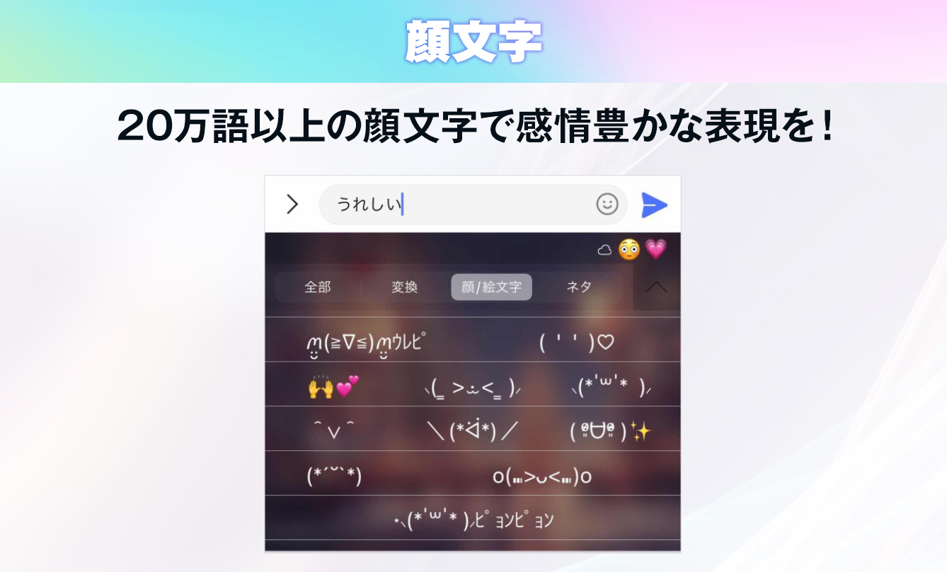 ・20万語以上登録!「顔文字」