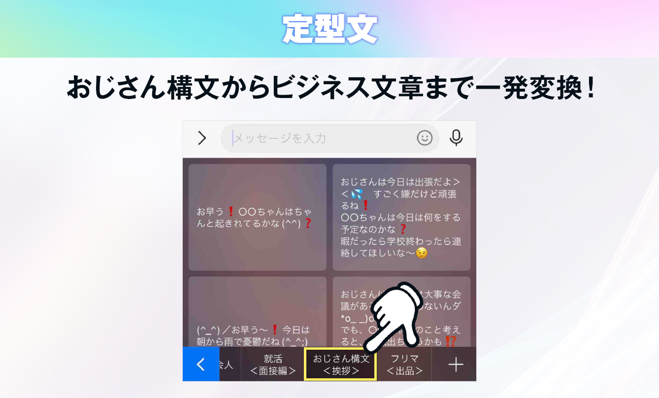 ・おじさん構文からビジネス文章まで一発入力!「定型文機能」