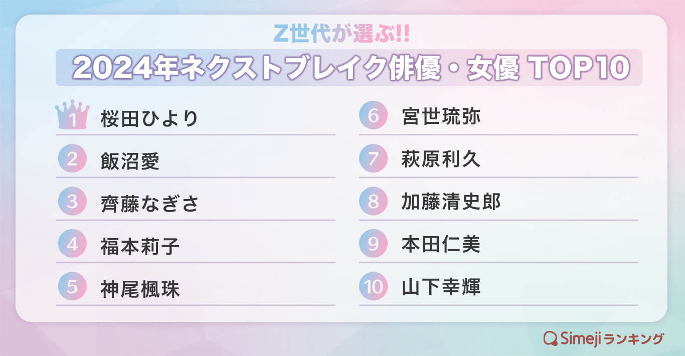 Z世代が選ぶ!! 「2024年ネクストブレイク俳優・女優TOP10」